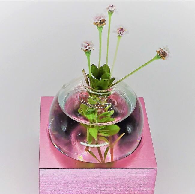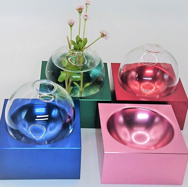 アルミ製品に染色アルマイト加工を施した、カラフルな一輪挿しです。(硝子ボール付き)