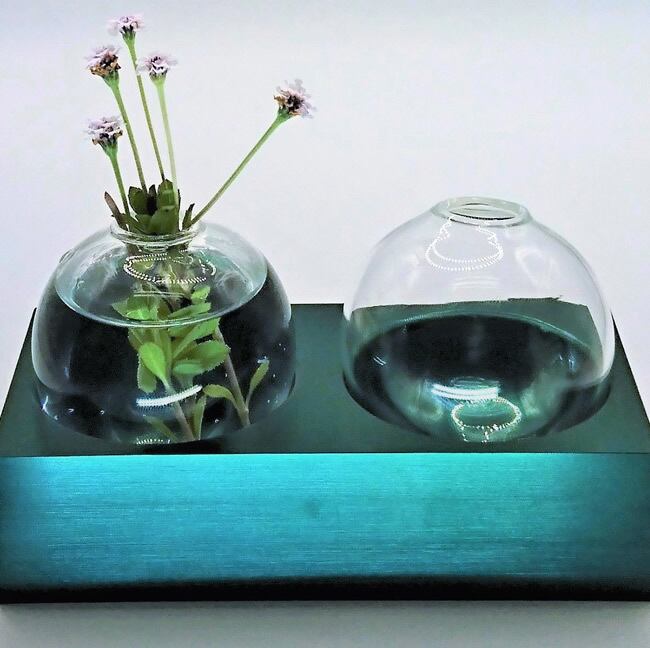 アルミ製品に染色アルマイト加工を施した、カラフルな一輪挿しです。(硝子ボール付き)